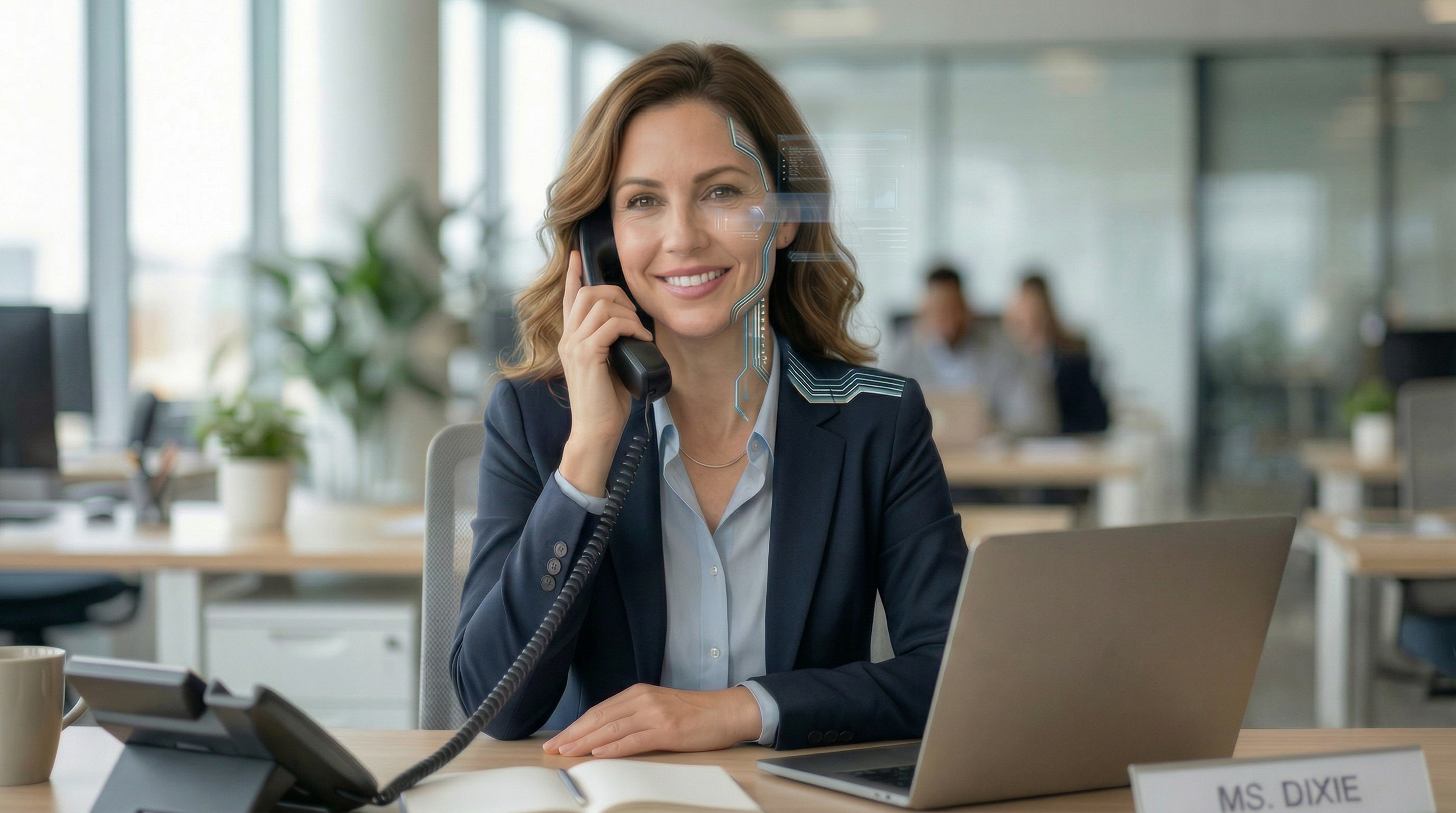 Ms. Dixie Rose uses advanced AI voice technology that sounds naturally human. She has natural speech patterns, appropriate pauses, and human-like inflection. Most callers can't tell the difference between her and a real receptionist. In studies, 87% of callers thought they reached a human operator. If a caller realizes they're talking to AI, they're usually impressed by how helpful and professional the interaction is.